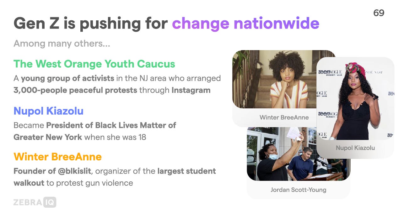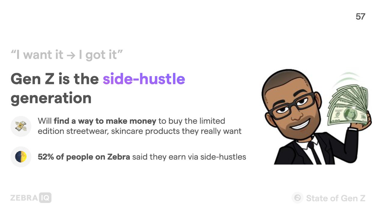 I was reading a recent newsletter by The Hustle, and it shared a lot of cool insights about Gen Z by the creator of Zebra IQ. You can download the slides here, but here are some pictures of it.